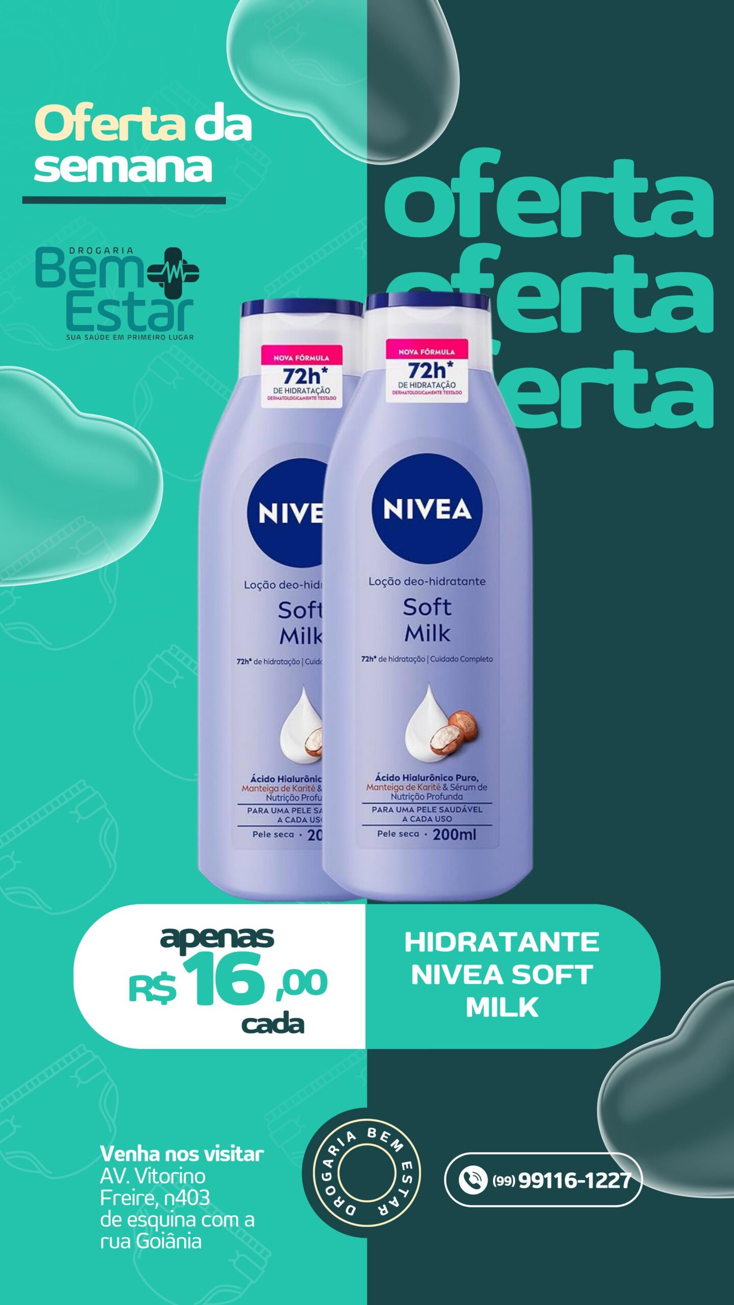 Hidratante Nivea Soft Milk (200ml) – Hidratação profunda por até 72h com ácido hialurônico e manteiga de karité. Só R$ 16,00 cada.