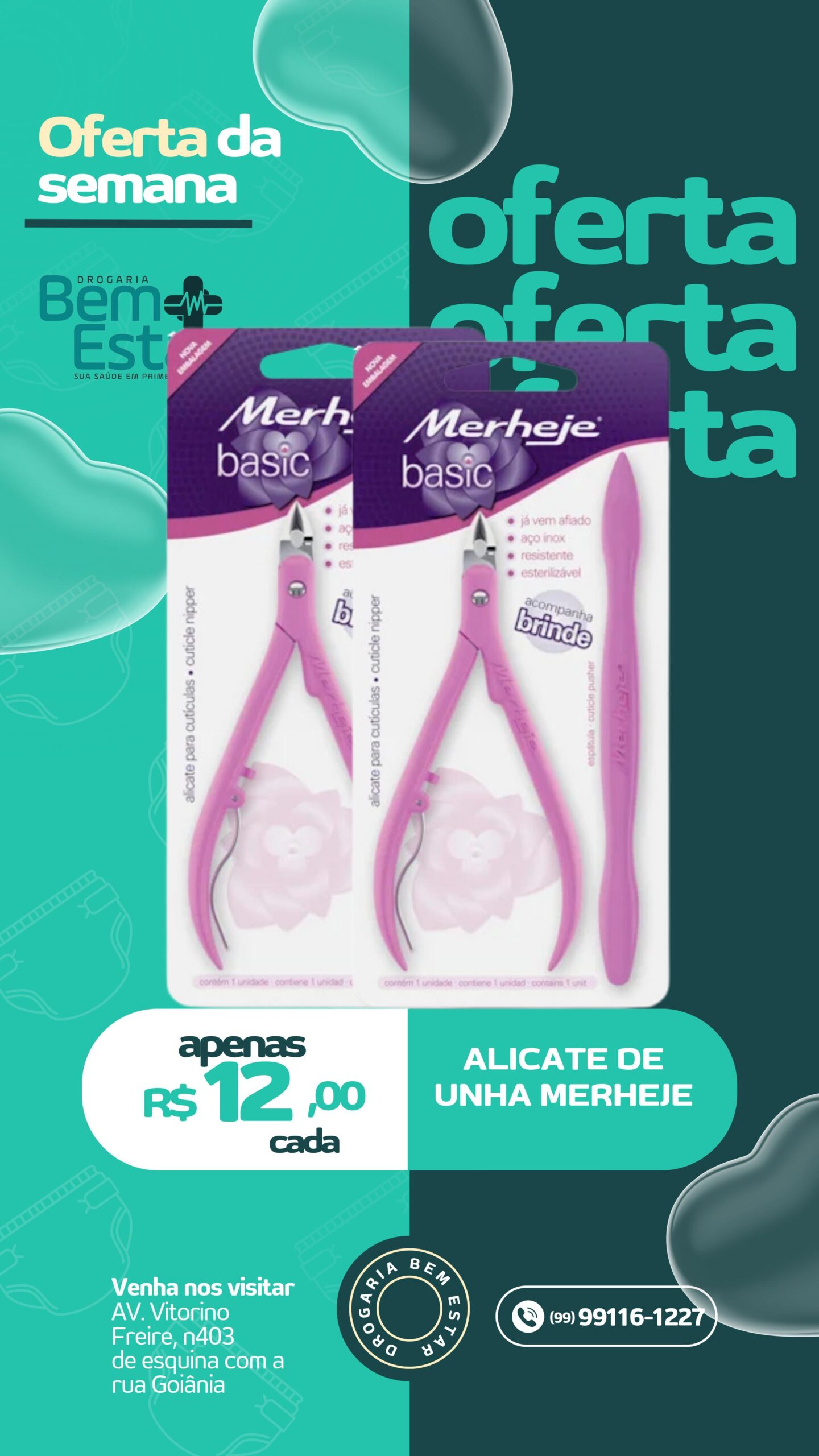Alicate de Unha Merheje Basic – Já vem afiado, em aço inox e ainda acompanha brinde! Apenas R$ 12,00 cada.