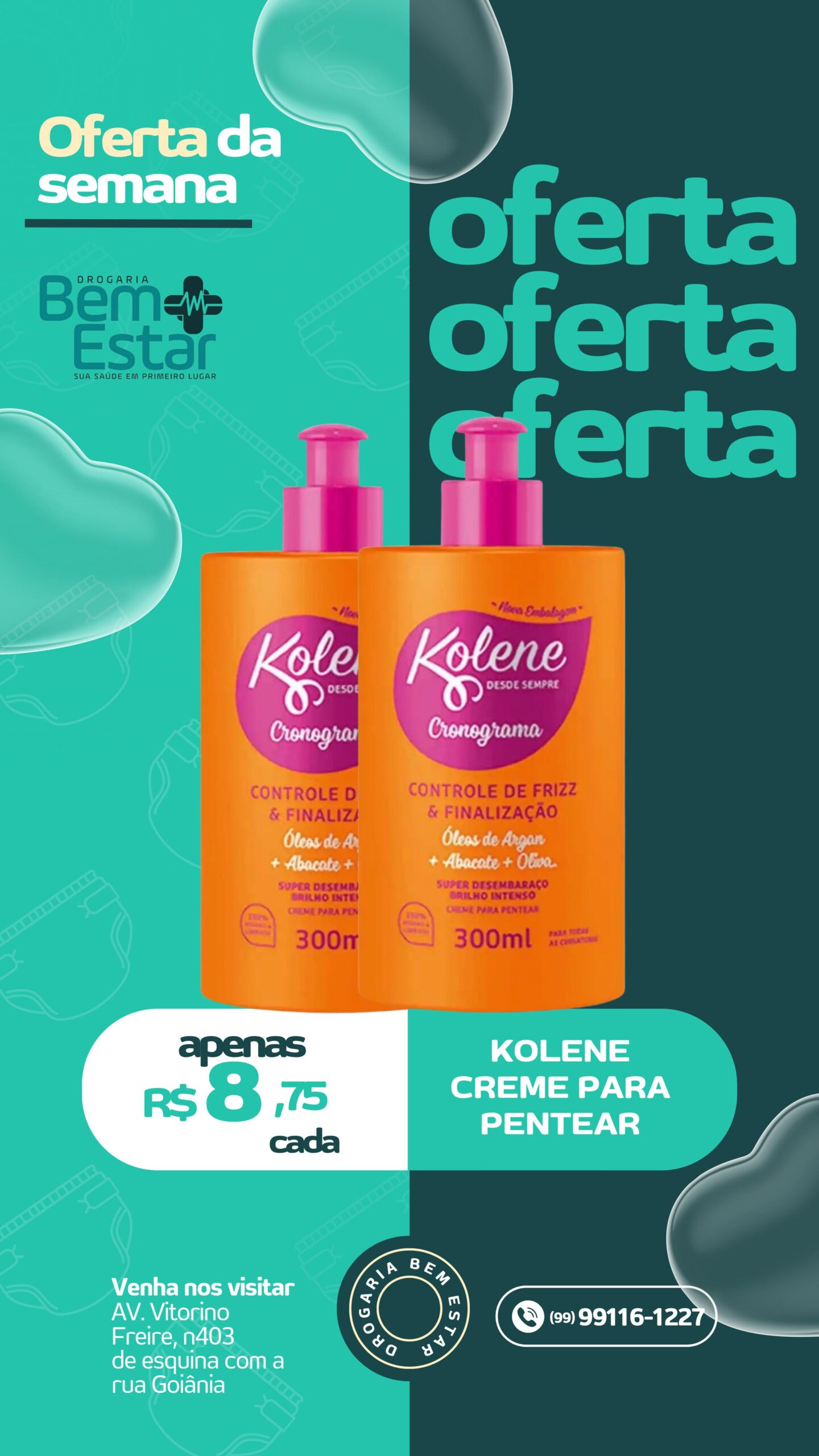 ✨ Kolene Creme para Pentear (300ml) – Controle de frizz e brilho intenso com óleos de argan, abacate e oliva. Apenas R$ 8,75 cada.