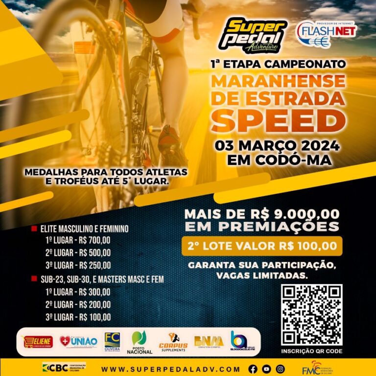 3ª Edição do Superpedal Adventure para Campeonato Maranhense de Estrada Speed e para a Corrida da Alegria em Codó, inscrições vão até dia 15 de fevereiro