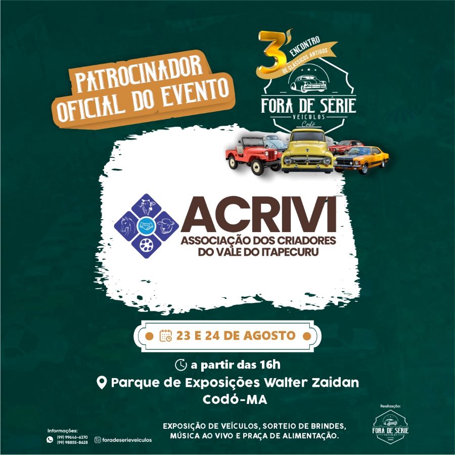 Nos dias 23 e 24 de agosto, no Parque de Exposições Walter Zaidan, em Codó/MA, acontecerá o 3º Encontro de Clássicos Antigos Fora de Série Veículos