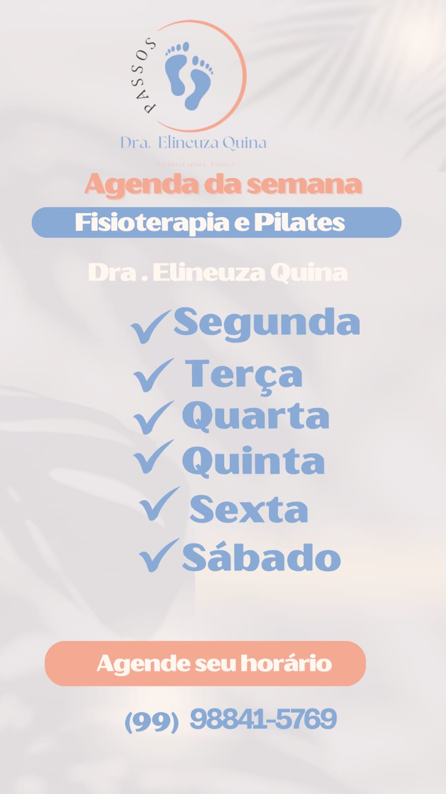 Agenda da semana da Passos Fisioterapia e Pilates Publicado em: 14 de fevereiro de 2025Autor: Alberto BarrosDeixe um Comentário!