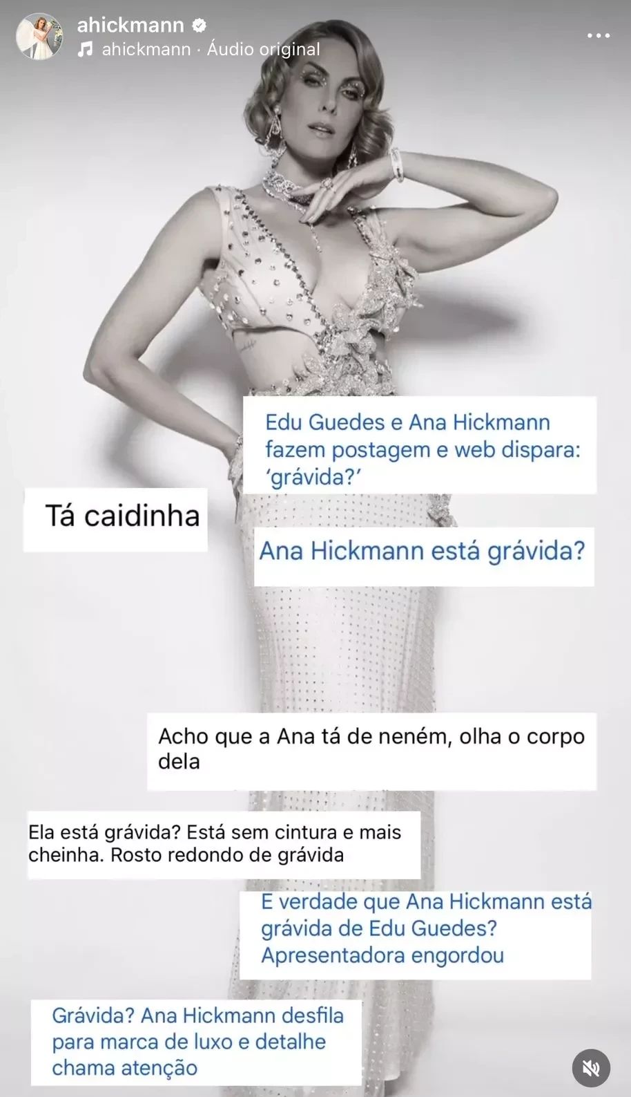 Após desfilar para uma marca de luxo em São Paulo, Ana Hickmann usou suas redes sociais nesta sexta-feira (17) para fazer um apelo por respeito. Nos bastidores, boatos sobre uma possível gravidez surgiram após comentários sobre uma suposta mudança no corpo da apresentadora, de 43 anos.