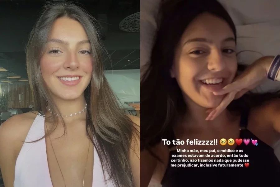 “Minha mãe, meu pai, o médico e os exames estavam de acordo, então tudo certinho, não fizemos nada que pudesse me prejudicar, inclusive futuramente”, escreveu ela em uma foto deitada na cama do hospital.