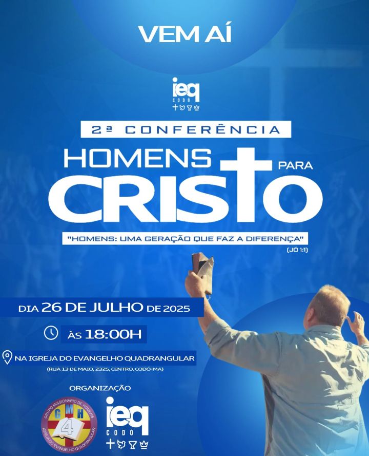 DIA: 26 de JULHO (sábado) com início às 18h00 pontualmente. Na Igreja do Evangelho Quadrangular.