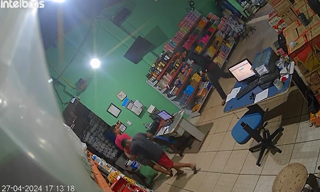 No final da tarde deste sábado (27), funcionários de um comércio em Codó (MA) foram surpreendidos por um bandido armado que invadiu o local exigindo dinheiro. O crime, que ocorreu por volta das 17h13, foi registrado por uma câmera de segurança do estabelecimento.