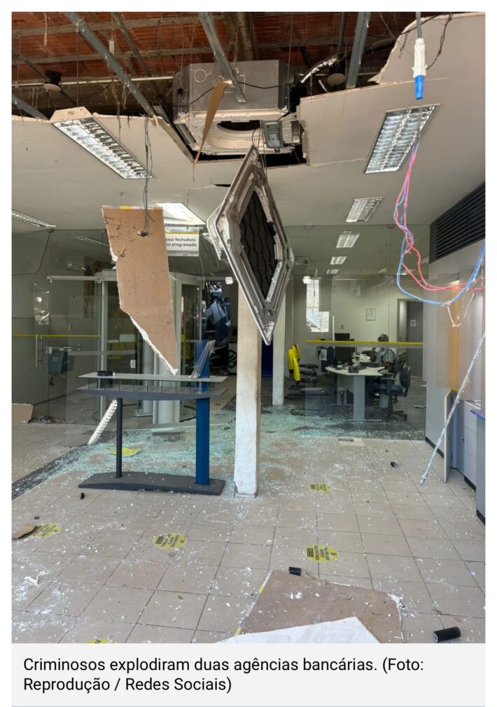 Bandidos explodiram duas agências bancárias na madrugada desta quinta-feira (30), em Amarantes do Maranhão, a cerca de 687 km de São Luís. Os alvos dos assaltantes foram as agências do Bradesco e Banco do Brasil (BB).