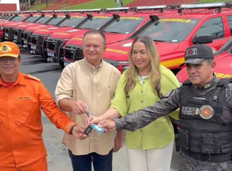 “Nesta primeira etapa, além das viaturas, foram entregues seis ambulâncias e 250 equipamentos de combate a incêndio”, festejou o comandante do Corpo de Bombeiros, coronel Célio Roberto Araújo.