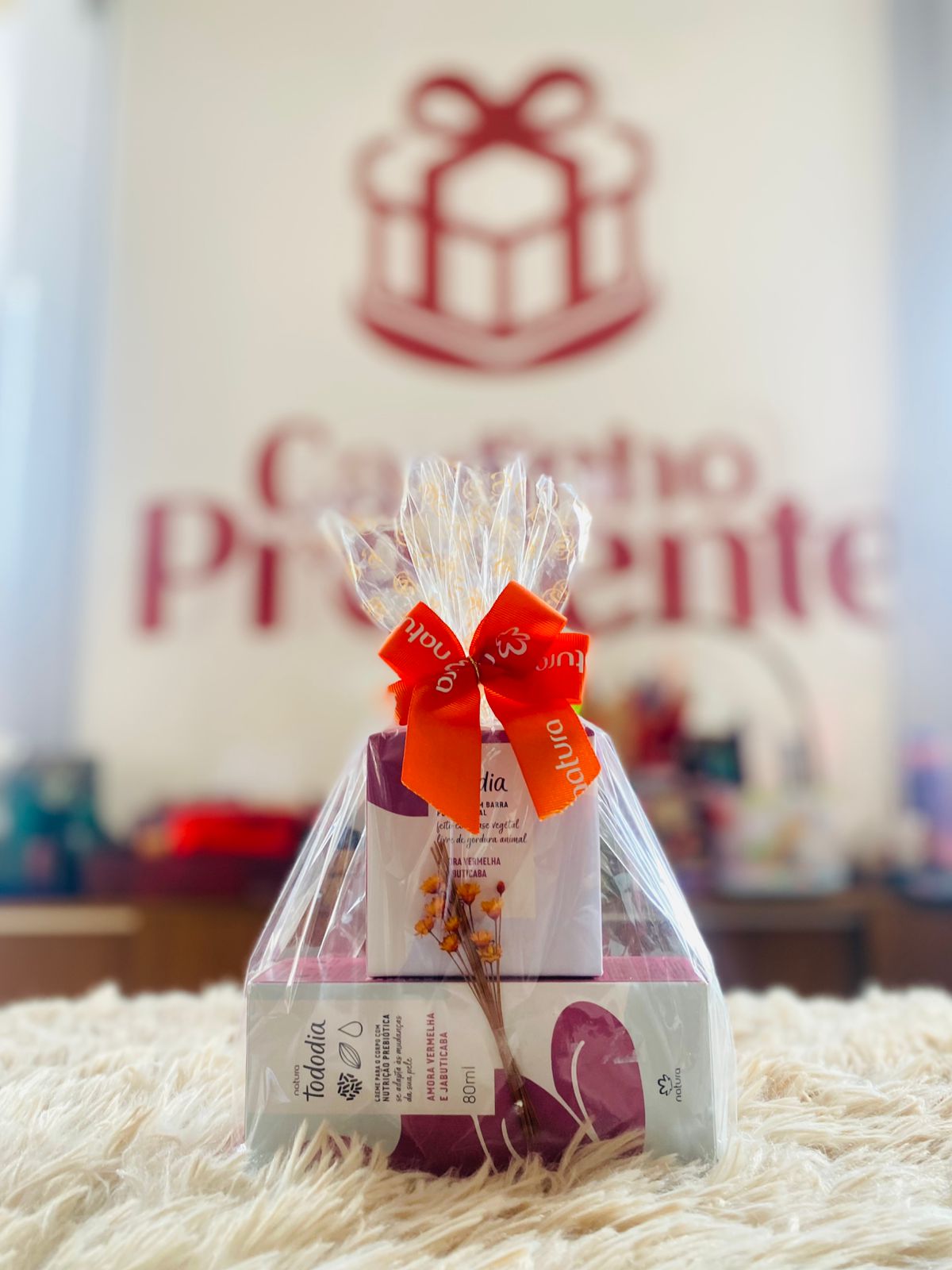 No Cantinho do Presente, você encontra muito mais do que lembranças – encontra carinho em cada detalhe! Nossas cestas e kits são preparados com todo cuidado, trazendo marcas de qualidade como Natura e Eudora, perfeitas para surpreender quem você ama.