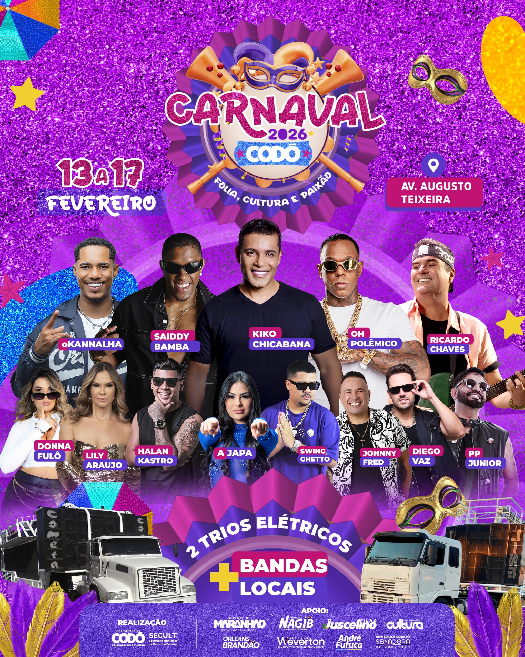 A expectativa é de mais um grande carnaval, fortalecendo a cultura popular, movimentando a economia local e consolidando Codó como um dos destinos mais animados do período carnavalesco no Maranhão.