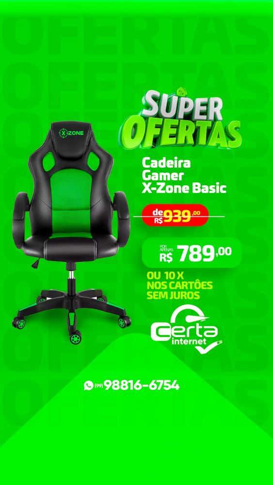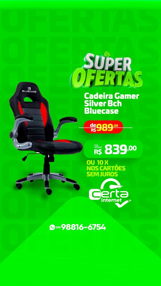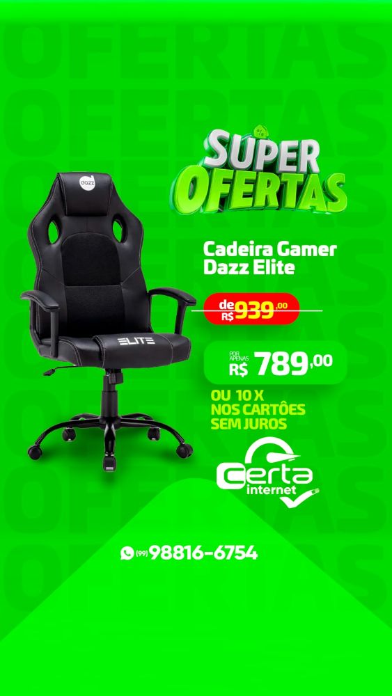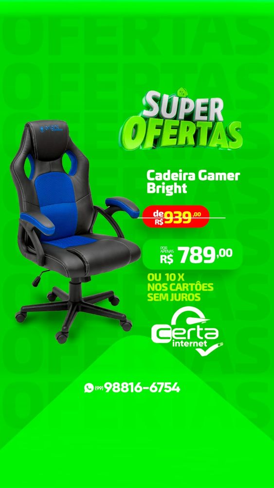 Certa Fibra: Super Ofertas em até 10 vezes sem juros nos cartões Publicado em: 7 de abril de 2025Autor: Alberto BarrosDeixe um Comentário! Na Mega loja da Certa Fibra você encontra Super Ofertas em produtos de informática, TI e assessórios de alta tecnologia, em até 10 vezes sem juros nos cartões Visa e Master Card. Confira Cadeiras Gamer em diversos modelos.