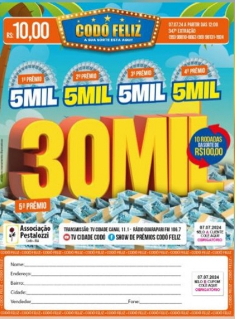 Compre já a sua cartela do Codó Feliz e concorra a R$ 51 Mil Reais Publicado em: 7 de julho de 2024Autor: Alberto BarrosDeixe um Comentário!