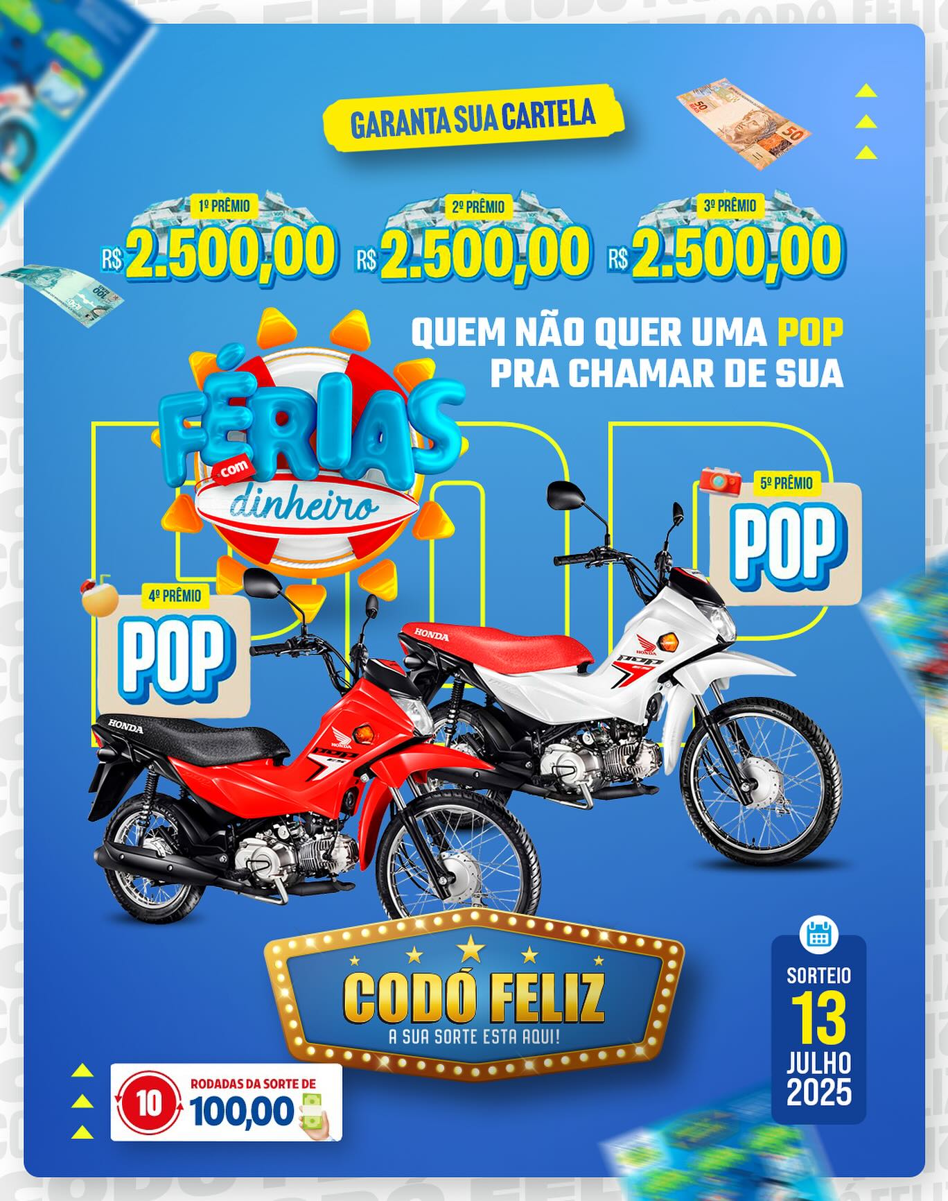Início »Geral»Compre já sua cartela do Codó Feliz e concorra a duas POPs 0km e mais R$ 8.500,00 em prêmios