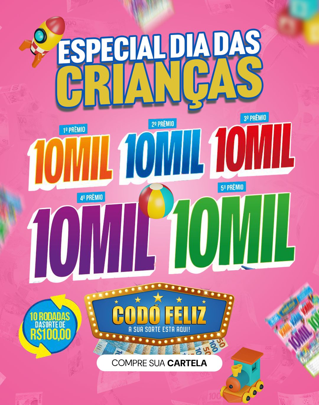 Início »Geral»Compre já sua cartela do Codó Feliz especial Dia das Crianças e concorra a R$ 51 Mil reais em prêmios
