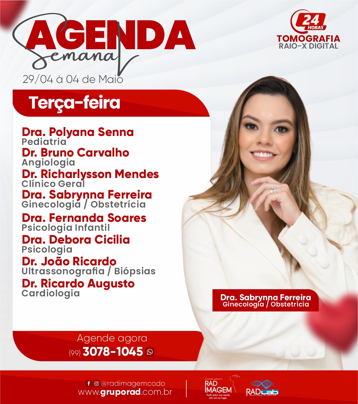 Confira a agenda da semana da Rad Imagem em Codó Publicado em: 29 de abril de 2024Autor: Alberto BarrosDeixe um Comentário! Confira a agenda da semana (29 de abril à 04 de maio) da Rad Imagem em Codó.