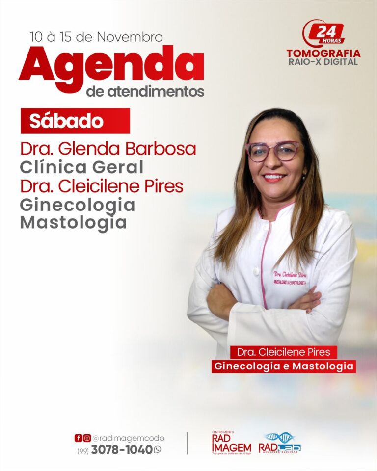 Confira a agenda de atendimentos na Rad Imagem em Codó Publicado em: 14 de novembro de 2025Autor: Alberto BarrosDeixe um Comentário! Confira a agenda de atendimentos na Rad Imagem em Codó; semana (de 10 à 15 de novembro).
