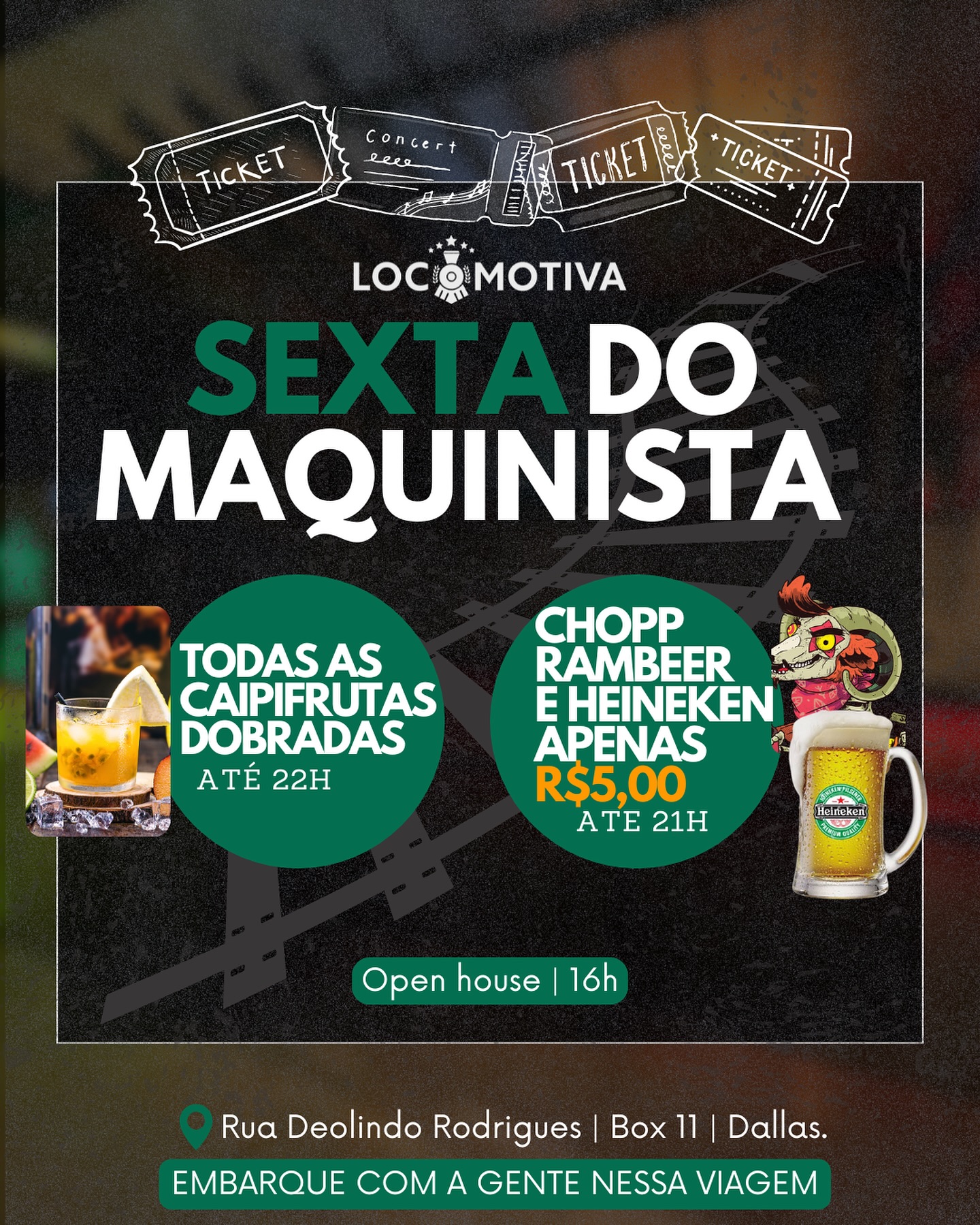 Confira a programação do fim de semana da Locomotiva; a choperia mais animada de Codó Publicado em: 25 de outubro de 2024Autor: Alberto BarrosDeixe um Comentário! Confira a programação do fim de semana da Locomotiva; a choperia mais animada de Codó. Os melhores petiscos e drinks, aquele chopp geladíssimo e as promoções mais camaradas da cidade. Tudo isso em um lugar aconchegante e com animação a noite toda.