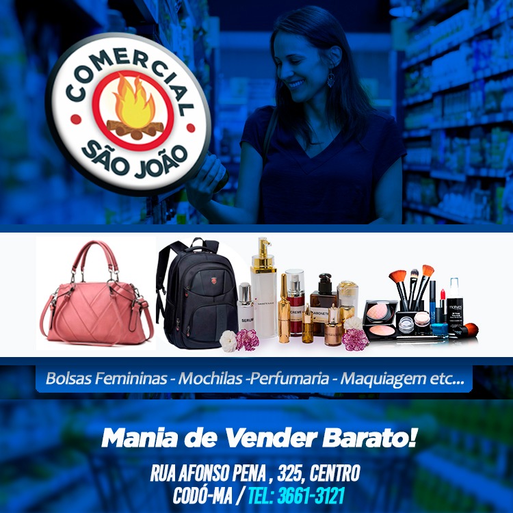 O Comercial São João conta com muitas novidades e ofertas em clima de São João. Se surpreenda com a infinidade de produtos, mesas e cadeiras de plástico, capas para sofá, artigos para o lar, cosméticos das melhores linhas profissionais, variedade em maquiagens, bolsas femininas e mochilas e utensílios domésticos, sempre com os melhores preços do mercado e as melhores condições de pagamento. E comprando Botox de um quilo você leva um shampoo anti resíduo.
