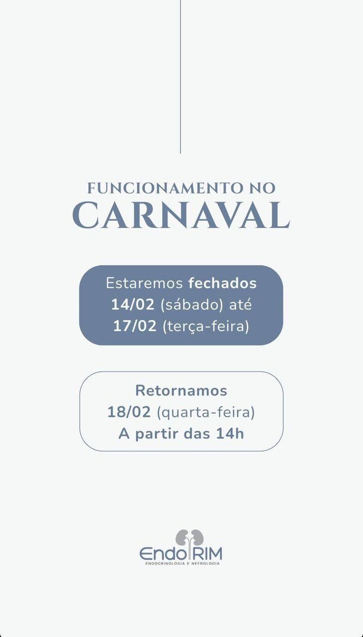 Confira o horário de funcionamento de Carnaval na EndoRim-Codó Publicado em: 15 de fevereiro de 2026Autor: Alberto BarrosDeixe um Comentário!