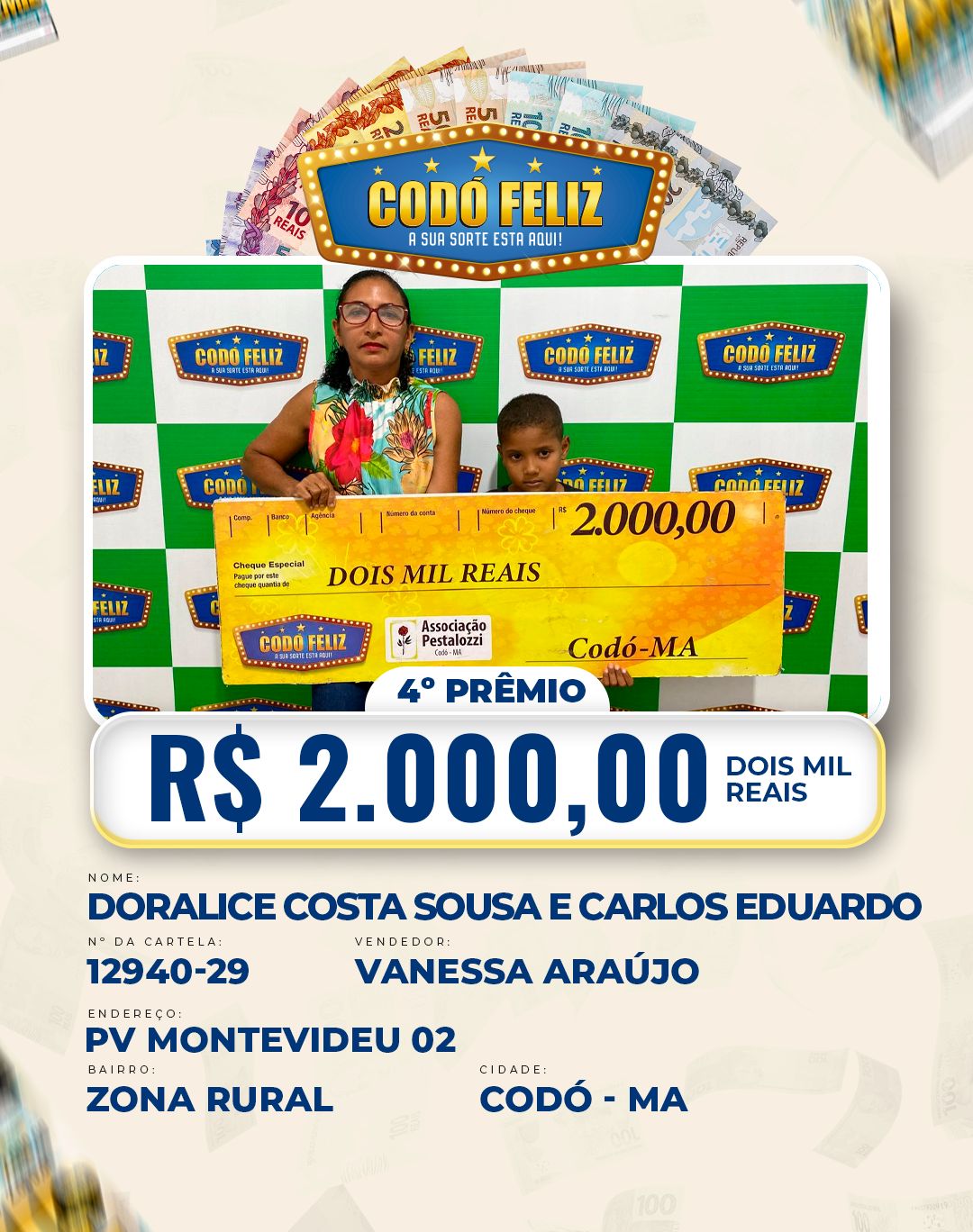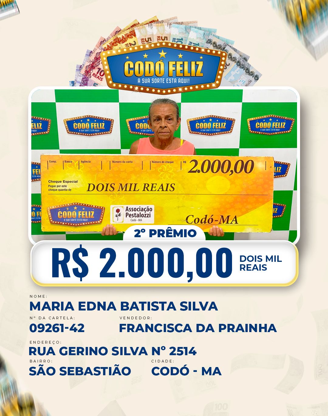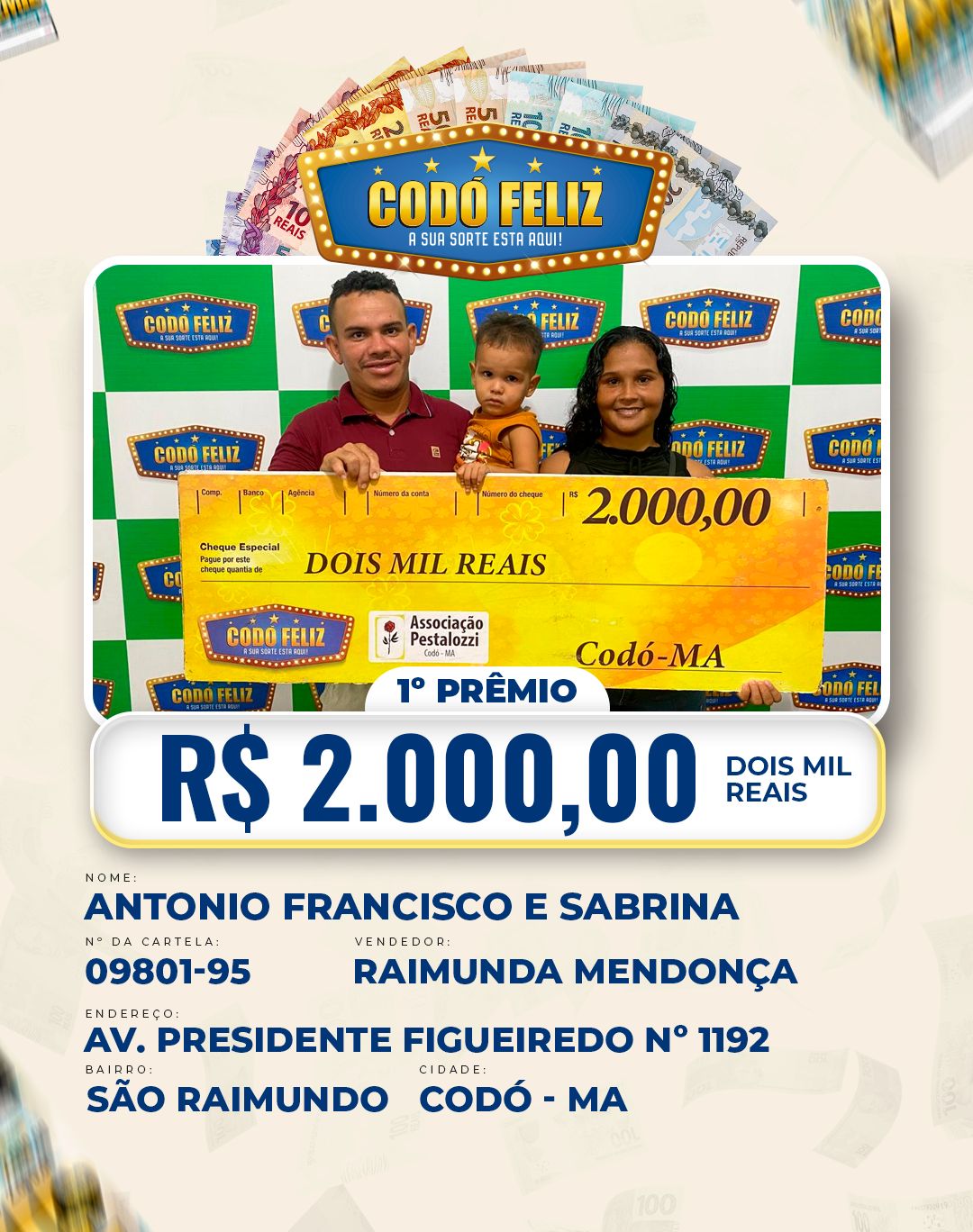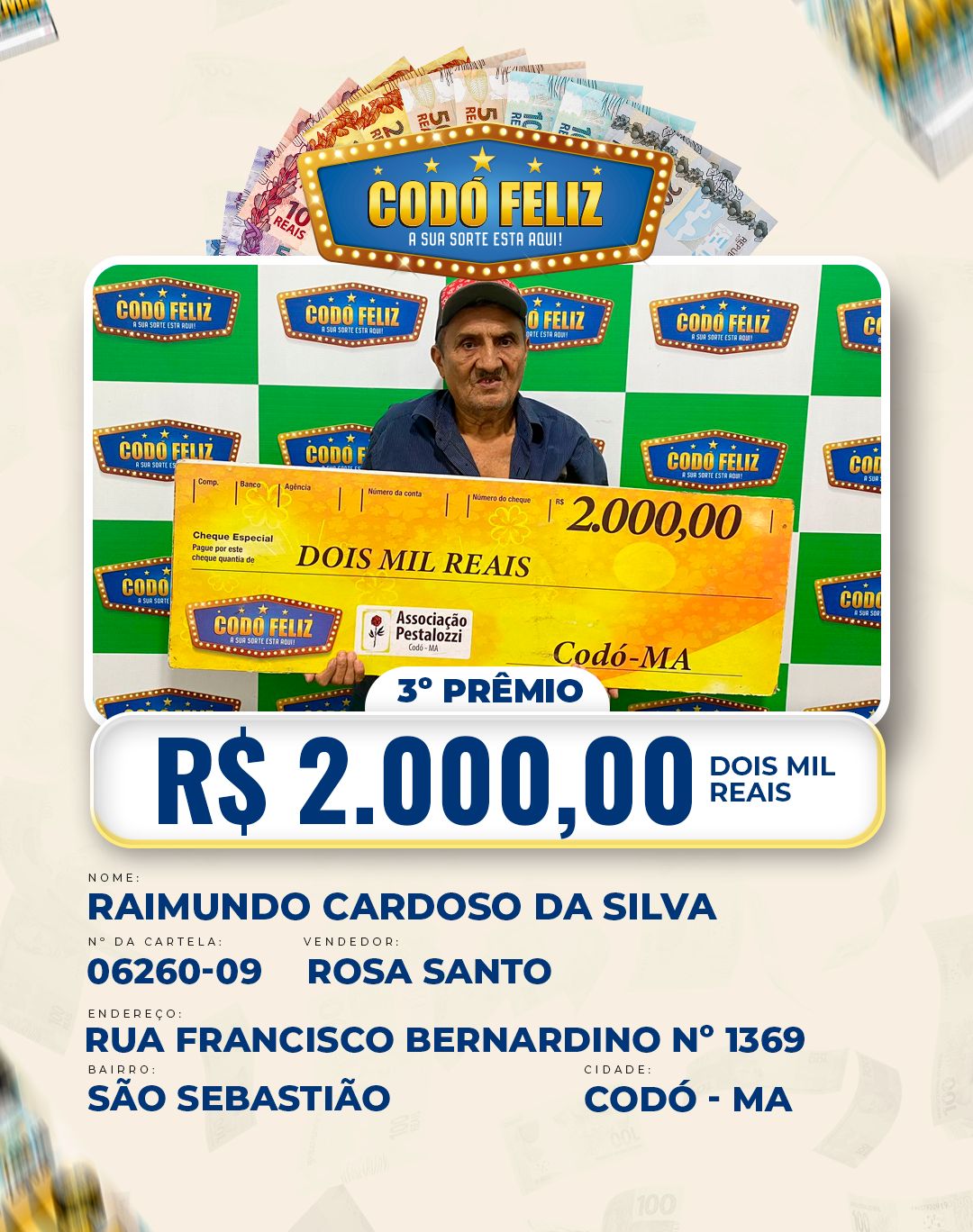 Confira os canhotos dos Ganhadores da 348ª Extração do Codó Feliz desse domingo Publicado em: 2 de julho de 2024Autor: Alberto BarrosDeixe um Comentário!