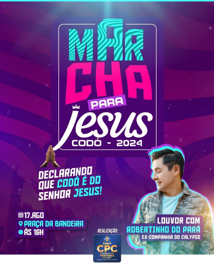 O Conselho de Pastores e as igrejas evangélicas de Codó têm se dedicado em orações e reuniões para a realização da Marcha para Jesus em Codó. A expectativa é de que o evento deste ano seja o melhor de todos os tempos.
