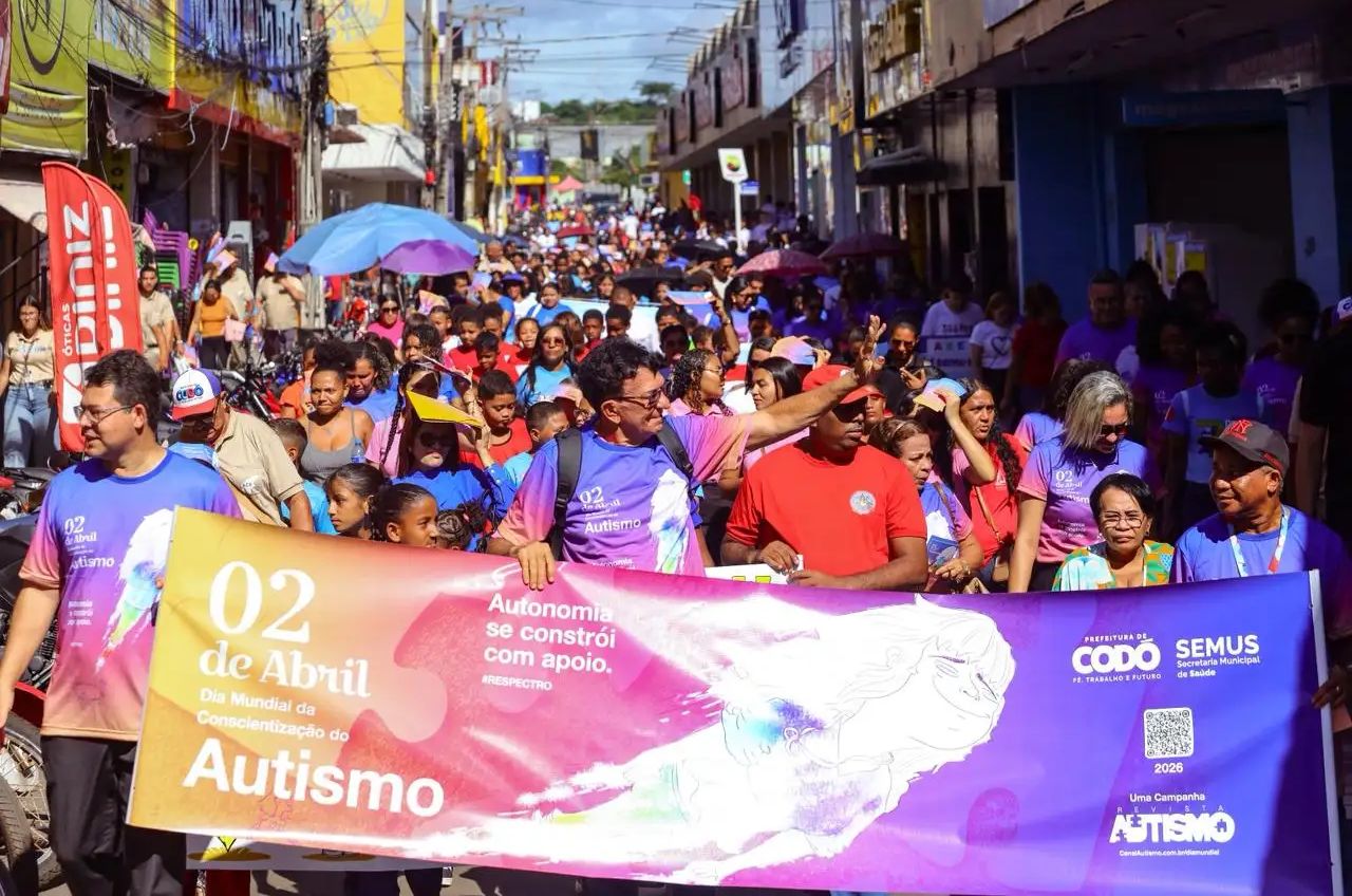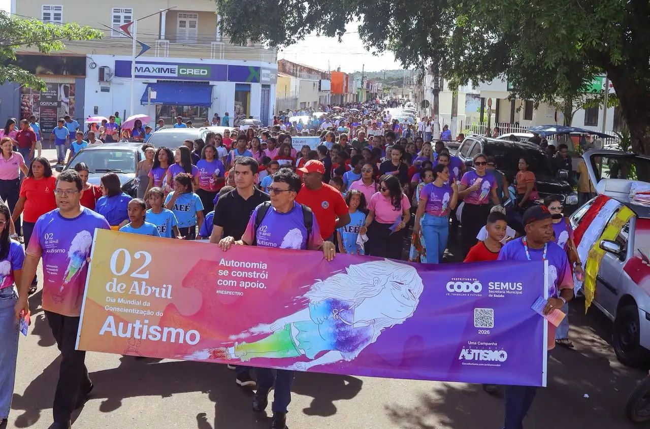 A cidade de Codó realizou, na quarta-feira (08), uma ampla mobilização em alusão ao Dia Mundial do Autismo, celebrado no dia 2 de abril, com ações voltadas à conscientização e à inclusão de pessoas com Transtorno do Espectro Autista (TEA). A iniciativa foi organizada pela Prefeitura, por meio das Secretarias Municipais de Saúde, Educação e Desenvolvimento Social.