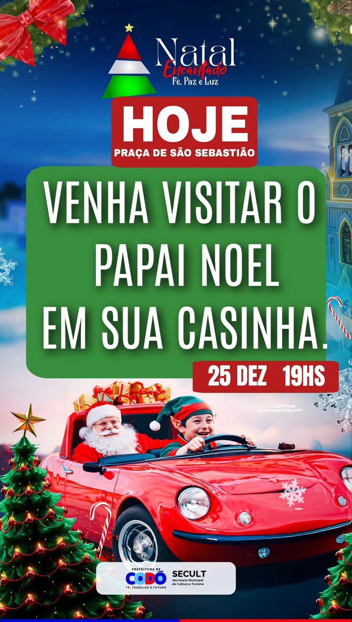 É hoje! Na praça de São Sebastião! Venha visitar o Papai Noel em sua casinha Publicado em: 25 de dezembro de 2025Autor: Alberto BarrosDeixe um Comentário!