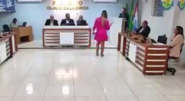 Enquanto o parlamentar falava no plenário, Paula, que segundo Pessoa é sua ex-namorada, entra na reunião e interrompe o político, que pede ao presidente da sessão, Deivinho Vasconcelos (MDB), que chame o policiamento da Câmara para retirá-la.