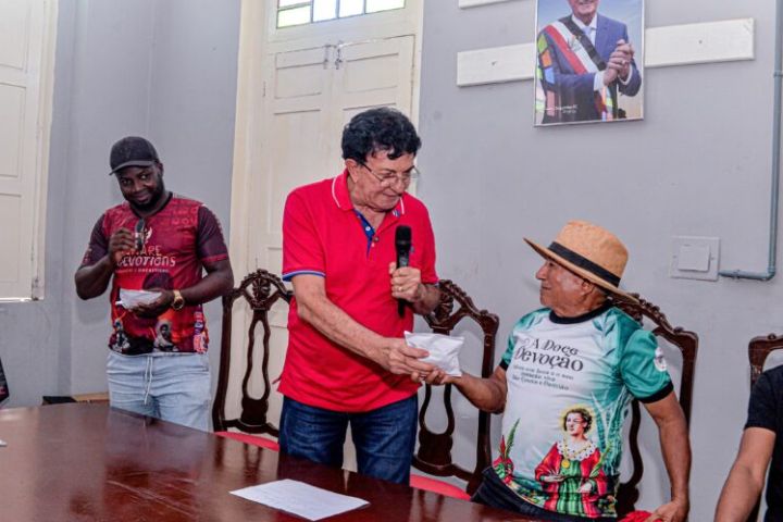 Nesta terça-feira (06), o prefeito Chiquinho FC (PT) reuniu-se com responsáveis dos grupos de danças juninas para entregar incentivos financeiros, fortalecendo as manifestações culturais e mantendo a tradição das festividades de São João no município.