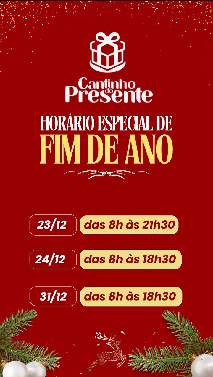 Horário de funcionamento do Cantinho do Presente neste Natal Publicado em: 24 de dezembro de 2025Autor: Alberto BarrosDeixe um Comentário!