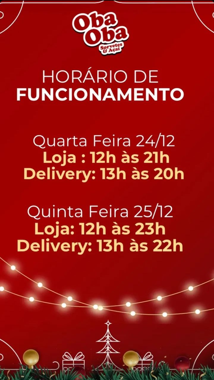 Horário de funcionamento Sorveteria Oba Oba Publicado em: 24 de dezembro de 2025Autor: Alberto BarrosDeixe um Comentário!