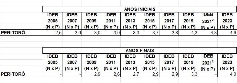O município de Peritoró conquistou seu melhor resultado da série histórica do Índice de Desenvolvimento da Educação Básica (IDEB) nos anos iniciais e finais do ensino fundamental. Os números do IDEB 2023 foram divulgados nesta quarta-feira (14) pelo Ministério da Educação.