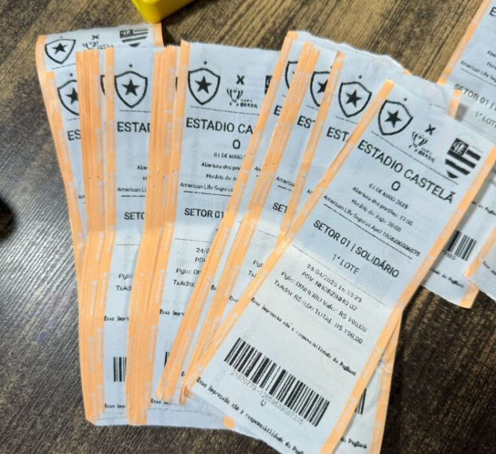 A organização alerta para a necessidade de adquirir bilhetes apenas pelos canais autorizados, após a prisão de dois homens, na manhã deste sábado, que vendiam ingressos falsos nas imediações do Castelão. A Polícia Militar apreendeu com a dupla 31 tíquetes falsificados, máquinas de cartão e material de impressão, e os suspeitos foram encaminhados à delegacia.