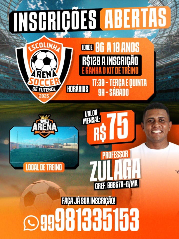 Não perca tempo! Garanta já a vaga do seu craque e ajude-o a desenvolver suas habilidades. Para fazer a sua inscrição, entre em contato pelo número 99981335153.