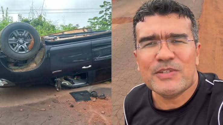 Em contato com a nossa reportagem, Lahesio afirmou que tentou desviar de um buraco, quando outro veículo acabou batendo violentamente no eixe traseiro da caminhonete, que capotou logo em seguida.