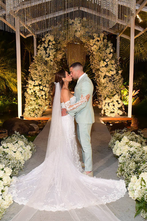 Lexa, 30, e Ricardo, 33, se emocionaram muito no altar. O casal soltou balões em homenagem à filha Sofia, que morreu três dias depois de nascer, em fevereiro deste ano.