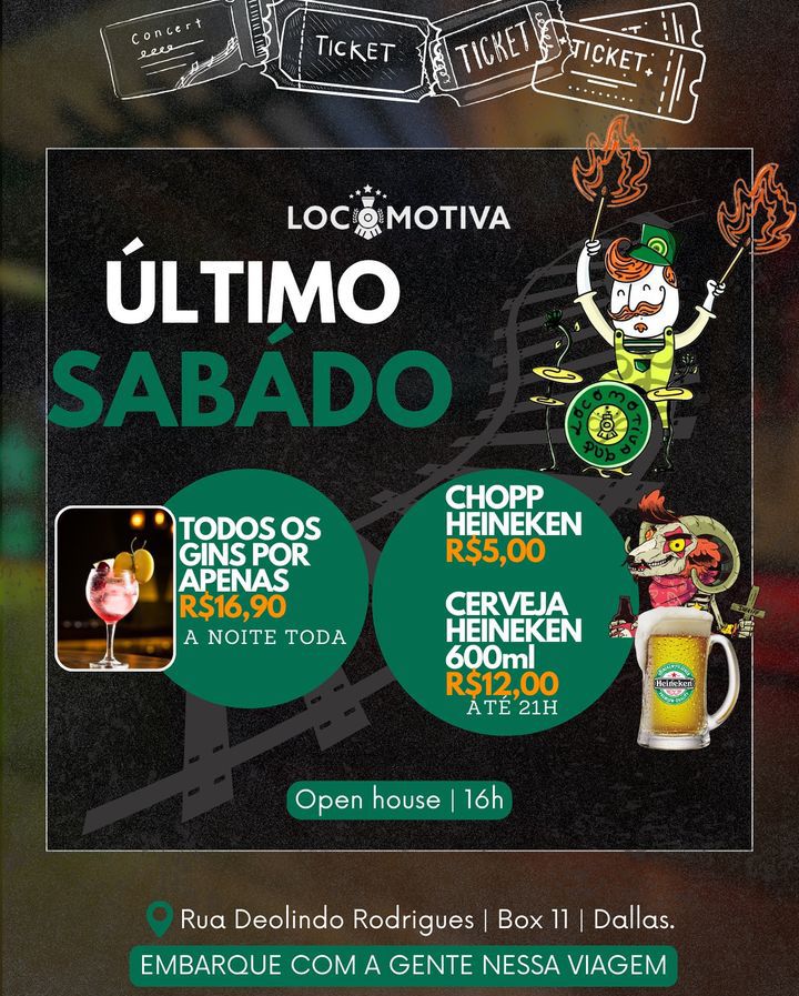 Dia 22/01, quarta-feira, nossa Locomotiva estaciona em um novo endereço, então pra comemorar nosso último sábado na estação atual, o maquinista liberou essa promoção maravilhosa pra você curtir com os amigos e relembrar tudo que viveram nos últimos 586 dias na nossa Locomotiva, ficaremos felizes em ter você conosco nessa data nostálgica.