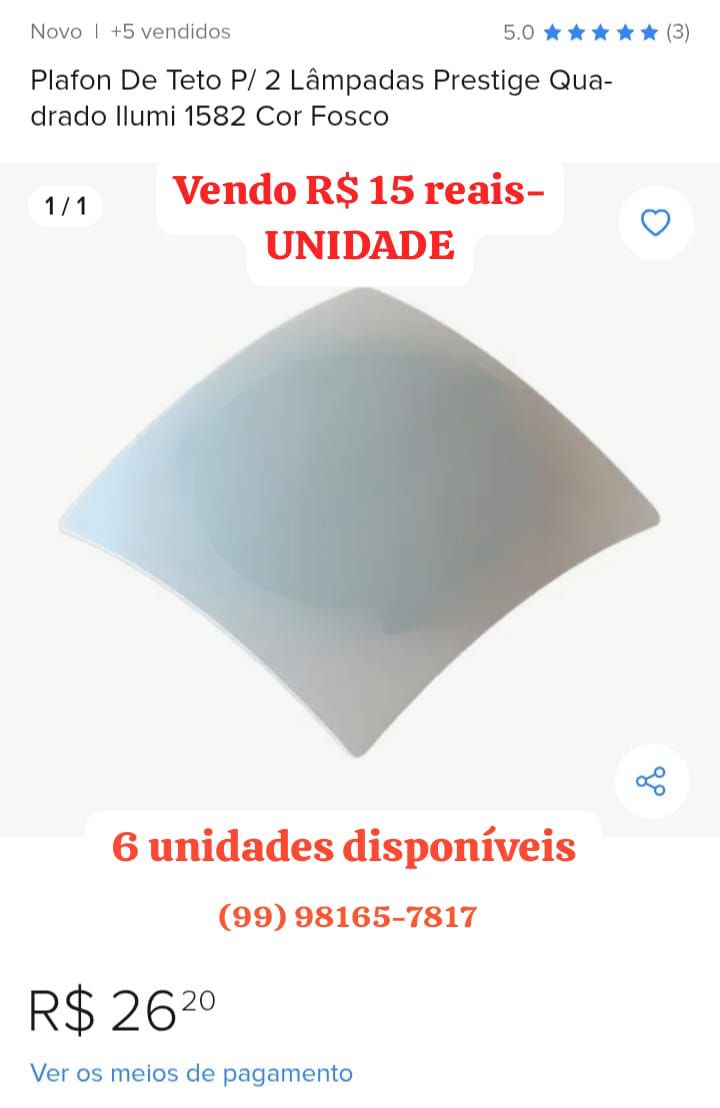 · Plafon Quadrado para 2 Lâmpadas: Novo, modelo Prestige, por apenas R$ 15.