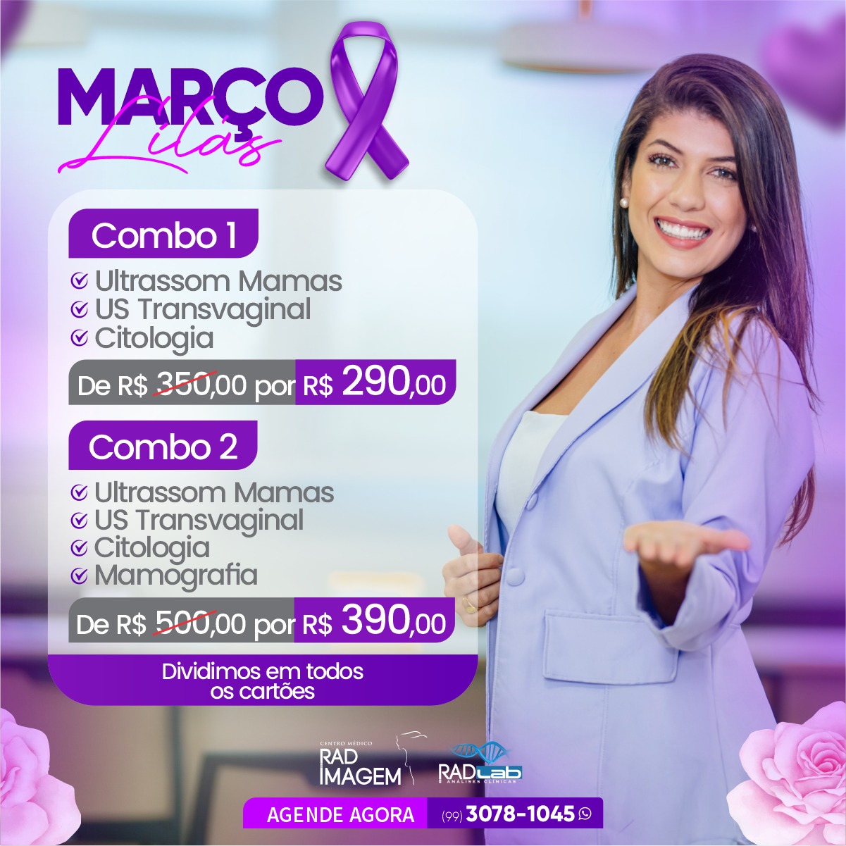 Neste mês de março o Centro Médico Rad Imagem traz para você mulher a campanha MARÇO LILÁS em conscientização a prevenção e combate ao câncer de colo uterino.