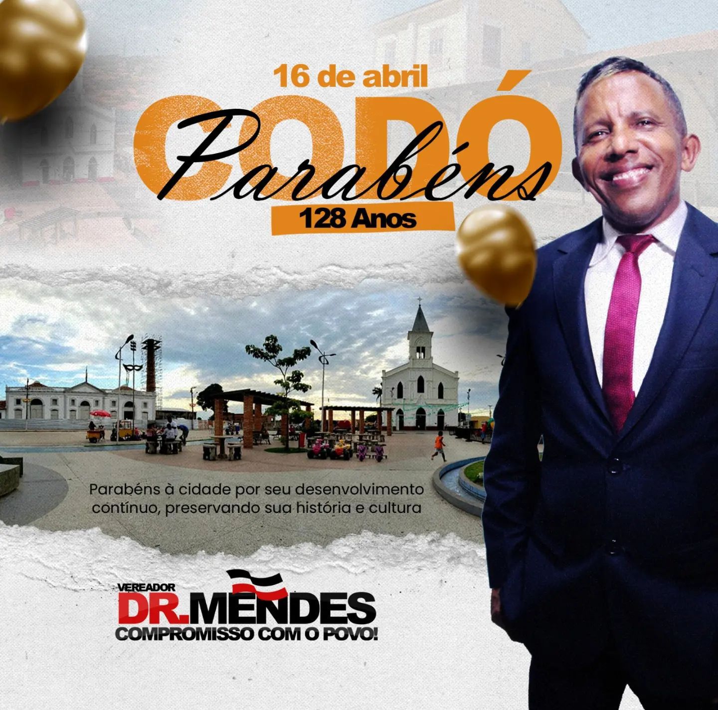Mensagem do vereador Dr. Mendes ao aniversário de Codó Publicado em: 16 de abril de 2024Autor: Alberto BarrosDeixe um Comentário!