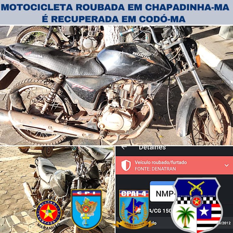 De acordo com levantamento na base de dados do DENATRAN, a motocicleta foi registrada e licenciada pela cidade de Chapadinha, e a mesma encontra-se com registro de roubo ou furto.