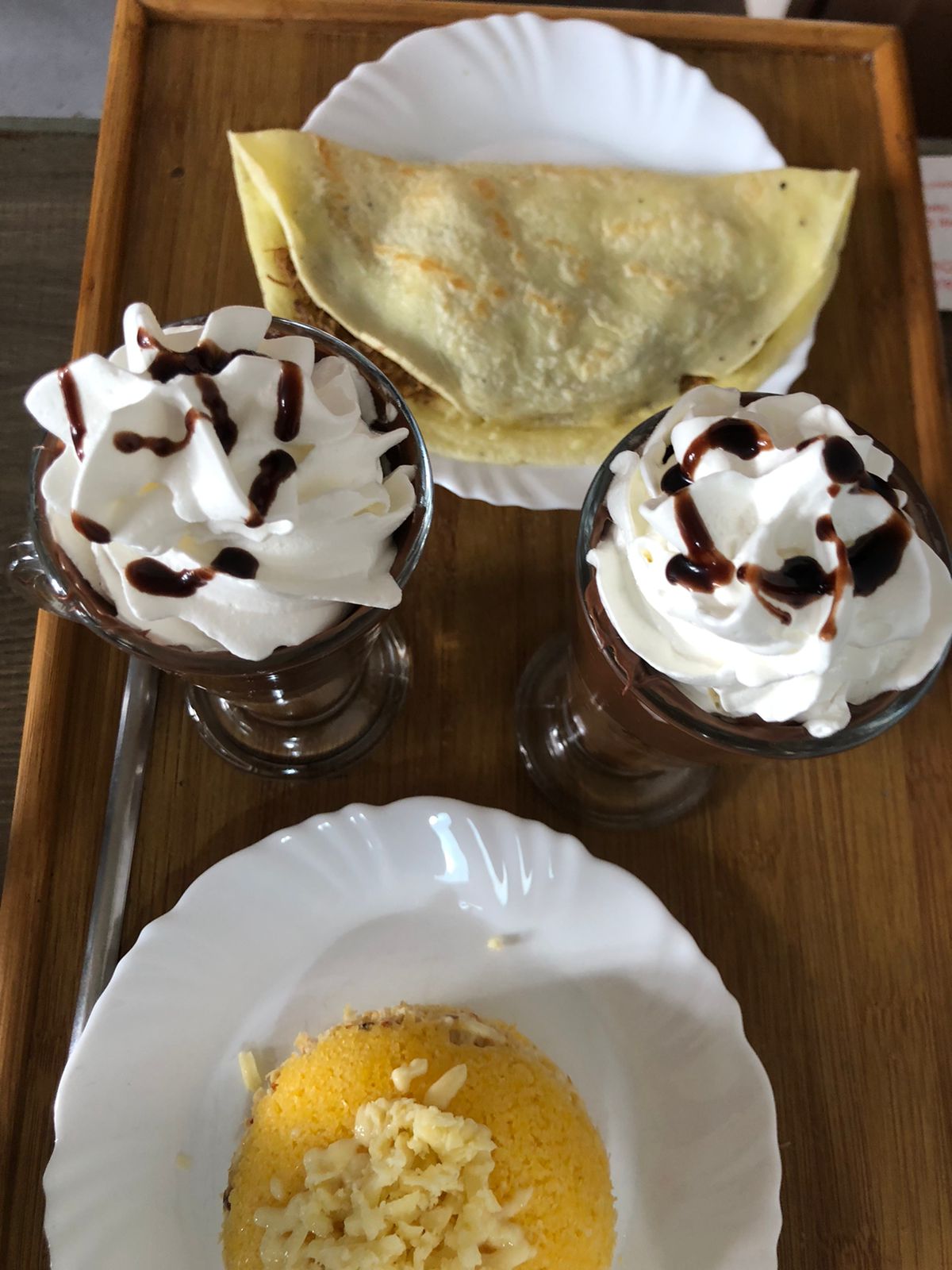 Acompanhando o café, os lanches ganham destaque. Opções que vão de salgados, panquecas, tortas leves e saborosas, a bolos caseiros que remetem ao conforto de um abraço. Tudo preparado com ingredientes frescos e um toque especial.