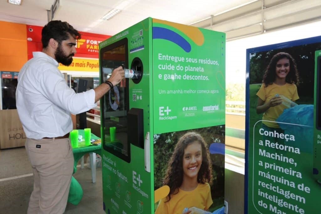 As máquinas Retorna Machine já estão em funcionamento. Os equipamentos estão sendo espalhados em pontos estratégicos da capital e são máquinas de autoatendimento, onde é possível fazer o descarte e posterior recebimento desse desconto.