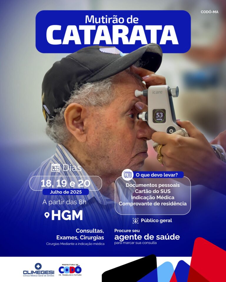 Nos dias 18, 19 e 20 de julho, o HGM será palco do Mutirão de Catarata, oferecendo consultas, exames e cirurgias gratuitas para a população.
