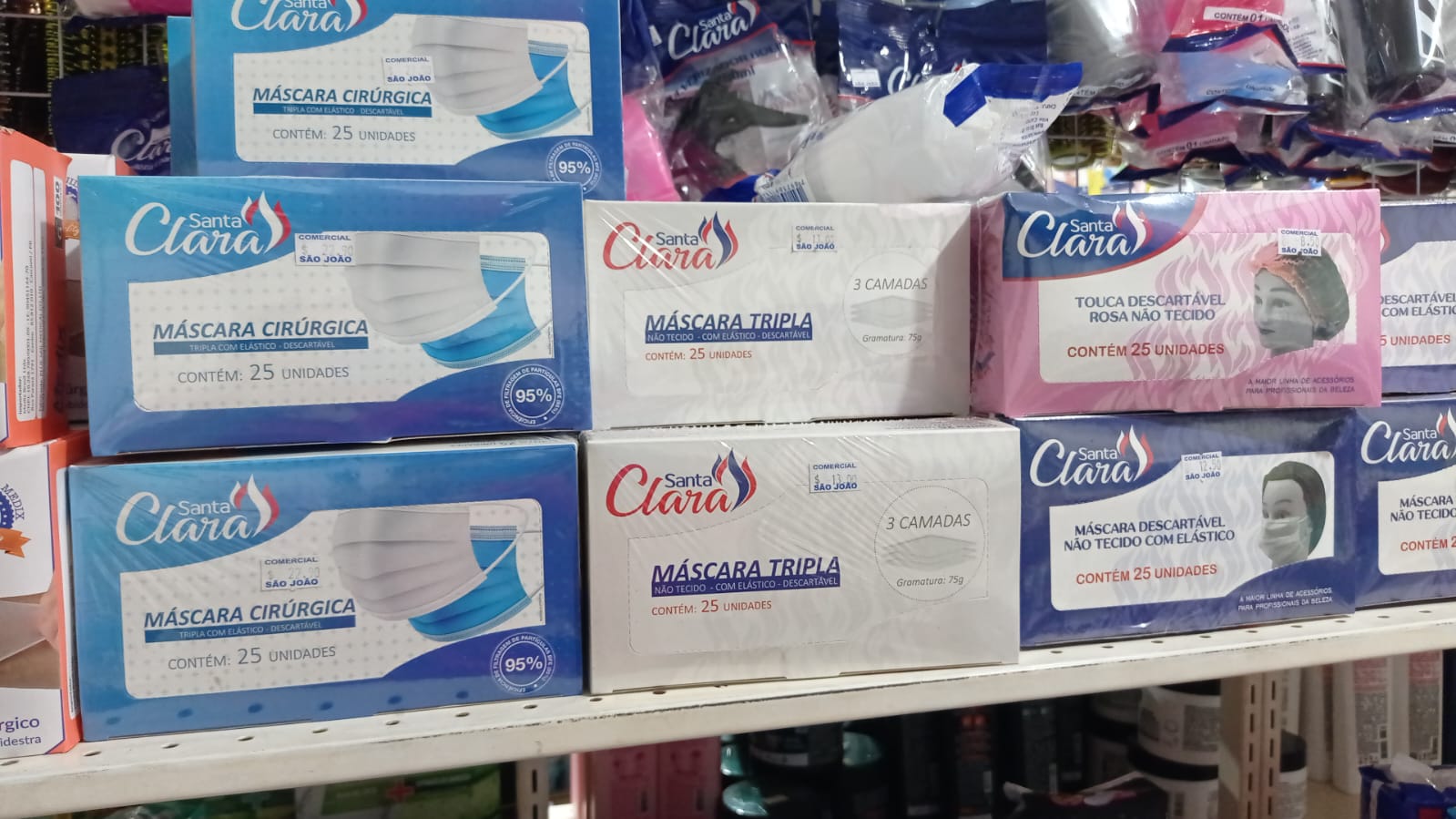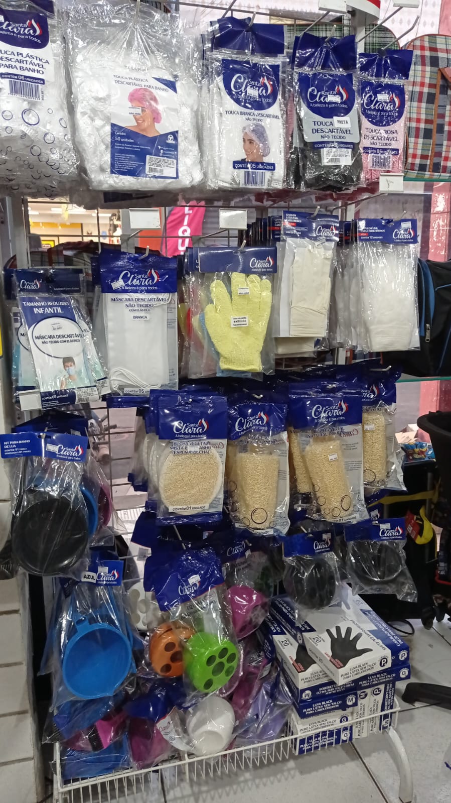 Máscaras descartáveis, em várias cores, Máscara tripla, papais para depilação e vários outros produtos da linha Santa Clara, com os menores preços só no Comercial São João.