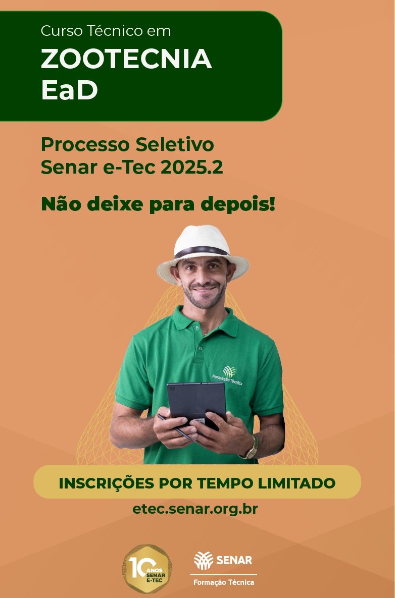 Atenção: O Serviço Nacional de Aprendizagem Rural (SENAR) e o Sindicato dos Produtores Rurais de Codó (SINCODÓ) informam que estão abertas as inscrições para o Curso Técnico de Nível Médio em Zootecnia. O Período de inscrição do dia 13/05/2025 às 23h59 do dia 23/06/2025. Serão 90 vagas em nossa região. (Peritoró, Presidente Dutra e Codó).