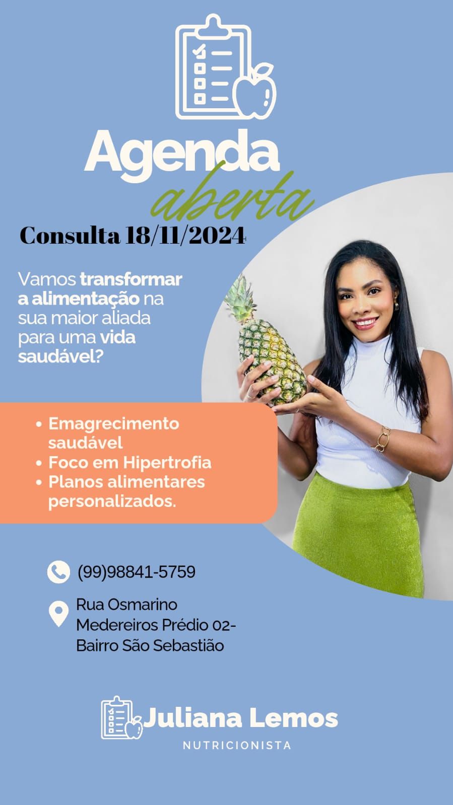 Passos Fisioterapia: agenda aberta para esta segunda (18) com a nutricionista Juliana Lemos - Blog do Alberto Barros