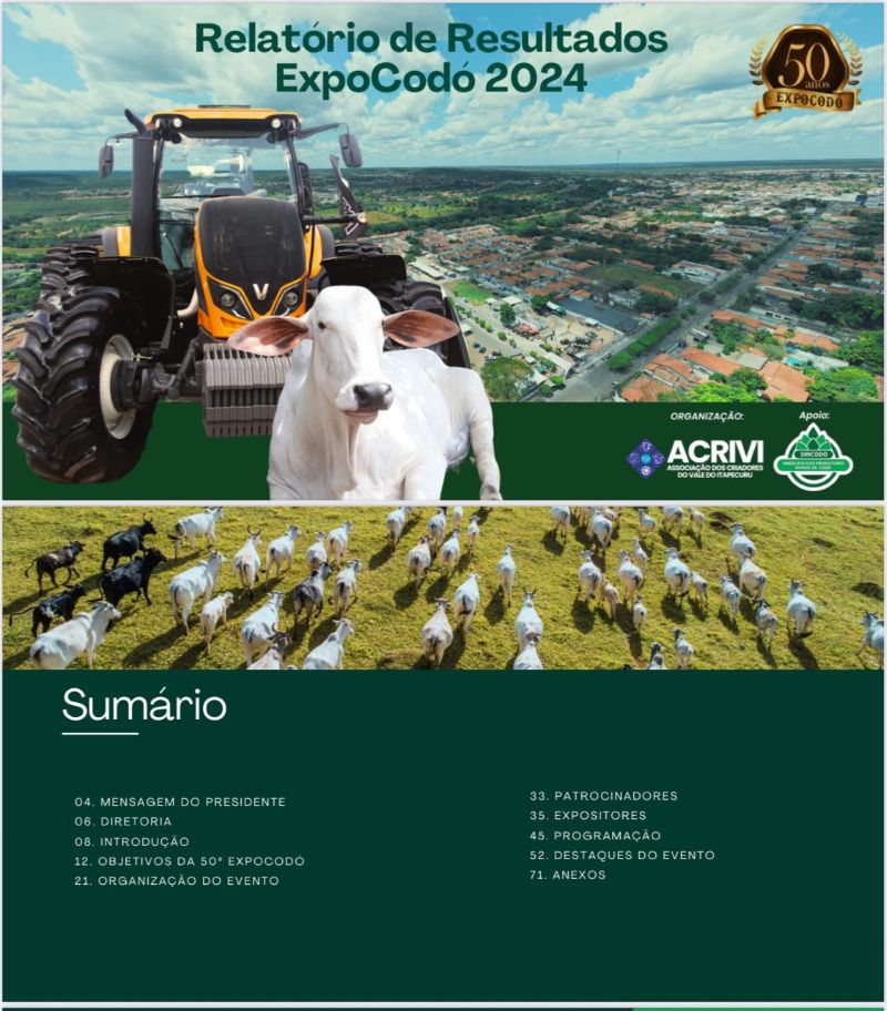 É com grande entusiasmo que a ACRIVI se dirige a você, como parte fundamental da nossa história ao longo dos 50 anos da EXPOCODÓ, celebrada com sucesso em 2024. Agradecemos sinceramente pela participação e pelo empenho demonstrado, que contribuíram para o sucesso deste grandioso evento, que pode ser revisto através do Relatório de Resultados que encaminhamos junto com esta correspondência.