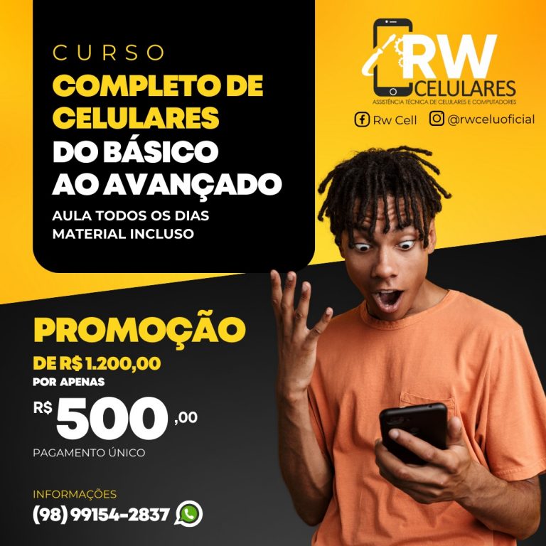 Confira a promoção de R$ 1.200,00 por apenas R$ 500,00: Faça os Cursos da RW Celulares, curso completo do básico ao avançado, parcelamento único.