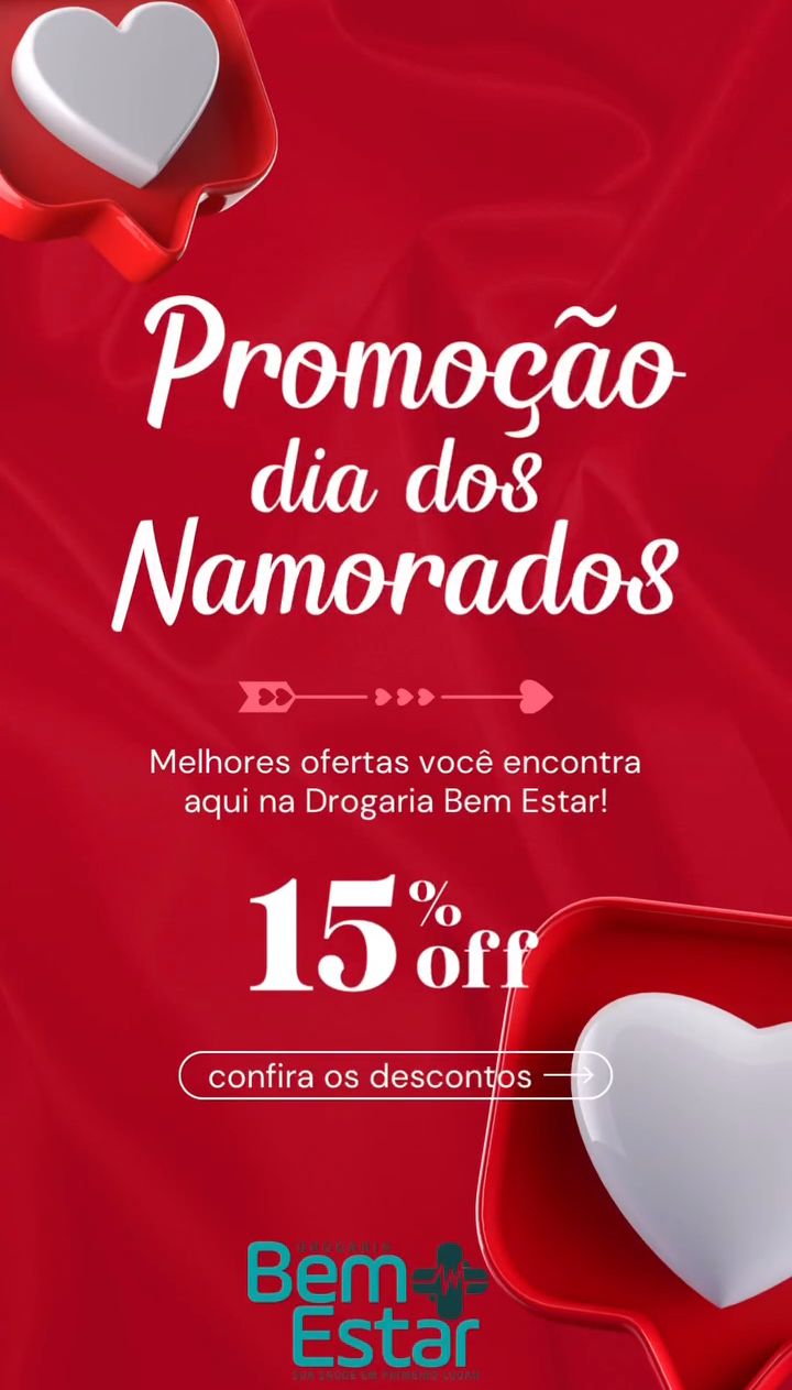 O amor está no ar — e os descontos também! Para celebrar o Dia dos Namorados, a Drogaria Bem Estar preparou ofertas especiais com 15% off em diversos produtos. É a oportunidade perfeita para cuidar de quem você ama com muito carinho e economia.
